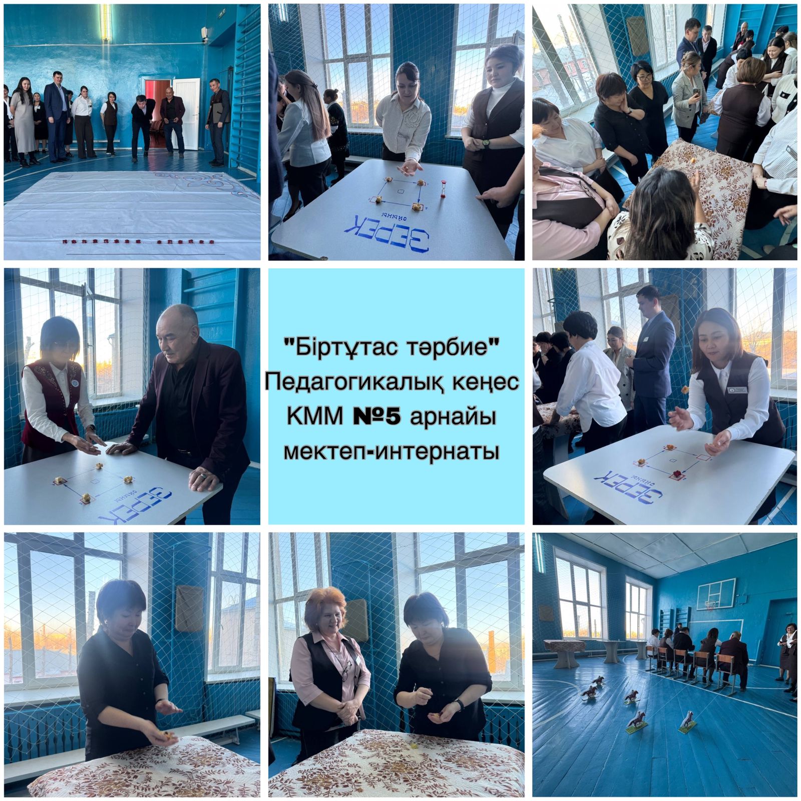 Педагогтарды сергіту мақсатында "Оюлар" жаттығуы мен "Бәйге", "Асық"ойындары да ұлттық нақышты айқындап тұрды.