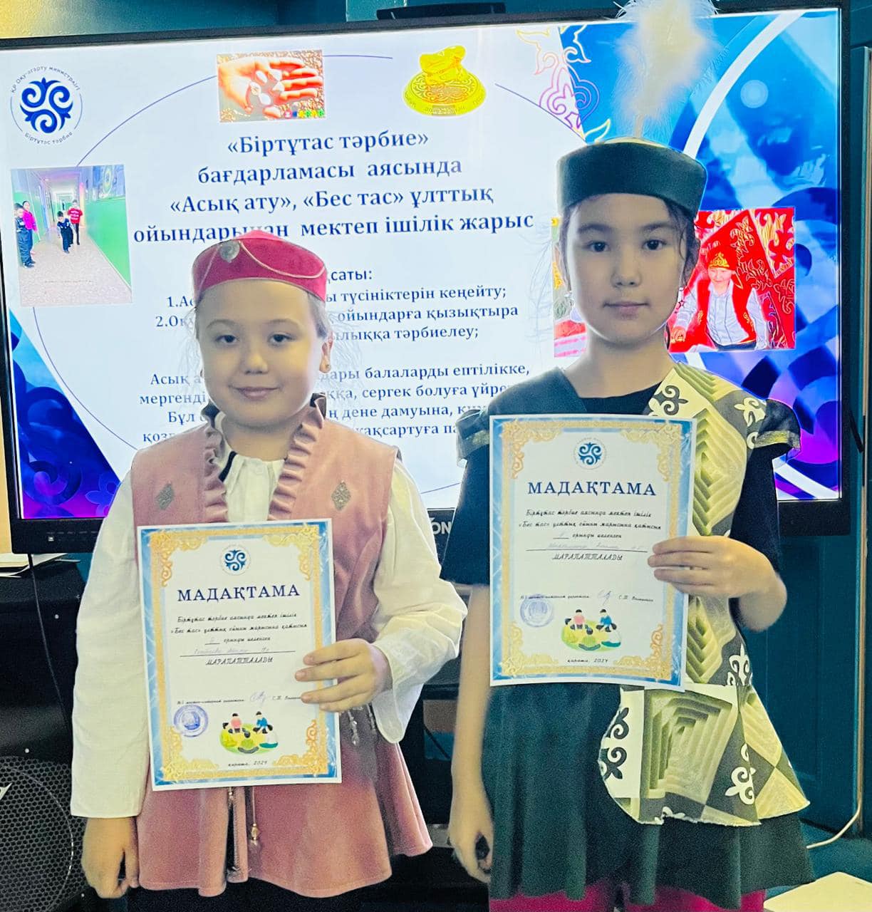 Біртұтас тәрбие аясында мектебімізде "Асық ату", " Бес тас" ұлттық ойындарынан сайыс өтті. Асық атудан 5ә сынып оқушысы Қалел Ерұлан 1орынға, 7а сынып оқушысы Конев Сергей 2 орынға ие болса, 3 орынды Райхан Алишер 9а, Сейсенов Ержигит 5а өзара бөлісіп алды. Бес тас ойынынан 1орын 10 сынып Головоченко Настя, 2 орын 9 сынып Куатқызы Нұрай, 3 орындарды 9 сынып оқушылары Серикова Аружан және Кабдулмуратова Нурай бөлісті. Ұлтық ойындарды балалар ерекше ынталарымен ойнап, өз ара алған әсерлерімен бөлісті. Ұйымдастырушы және жаттықтырушы Құсайынов Алтынбек Б.