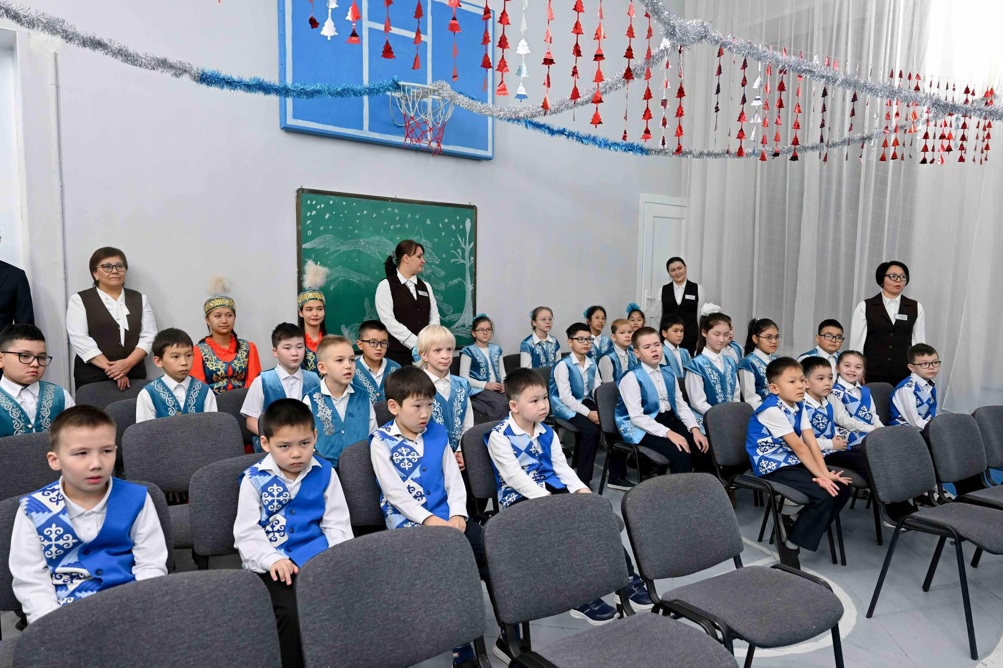 Кездесу барысында оқушылар қонақтарға өз мектебі туралы айтып, көрсетілген қамқорлық үшін және мектепте салынып, бүгінде пайдалануға беріліп тұрған жаңа футбол алаңы үшін алғыстарын білдірді. Әкім облысы жаңа жыл қарсаңында мектепке интерактивті панель мен тәтті сыйлықтар тарту етті. Ризашылық белгісі ретінде оқушылар би өнерін көрсетіп, қонақтарға өз өнерлерін ұсынды. Кездесу соңында естелік суретке түсу ұйымдастырылды.