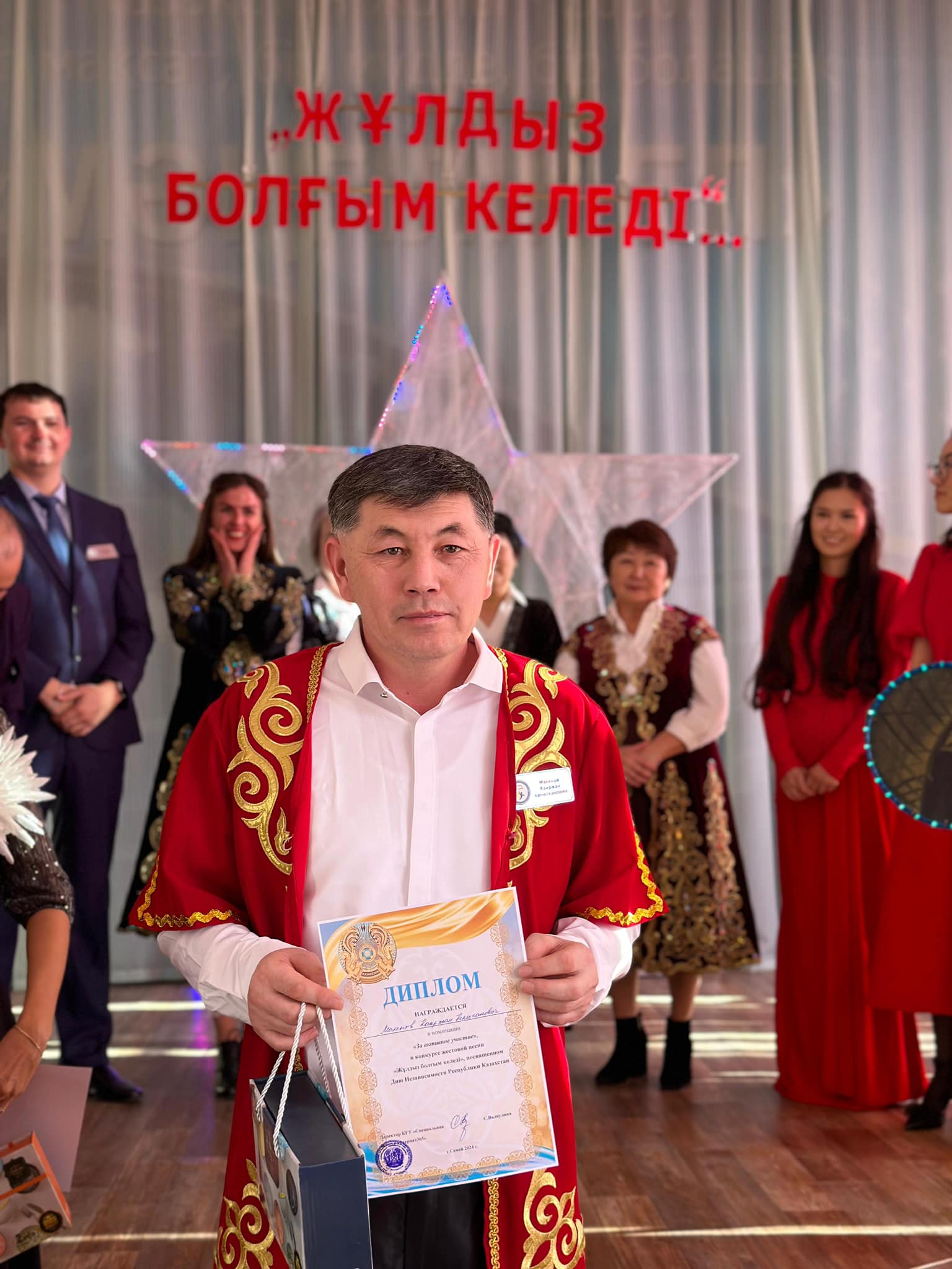 В предверии Дня Независимости в школе прошел конкурс песен "Хочу быть звездой". На этот раз учителя увидели новый ракурс и спели на родном языке. Собрались в паре, выбирали песни о Родине, долго готовились и представили их вниманию коллег, жюри и, конечно же, студентов.